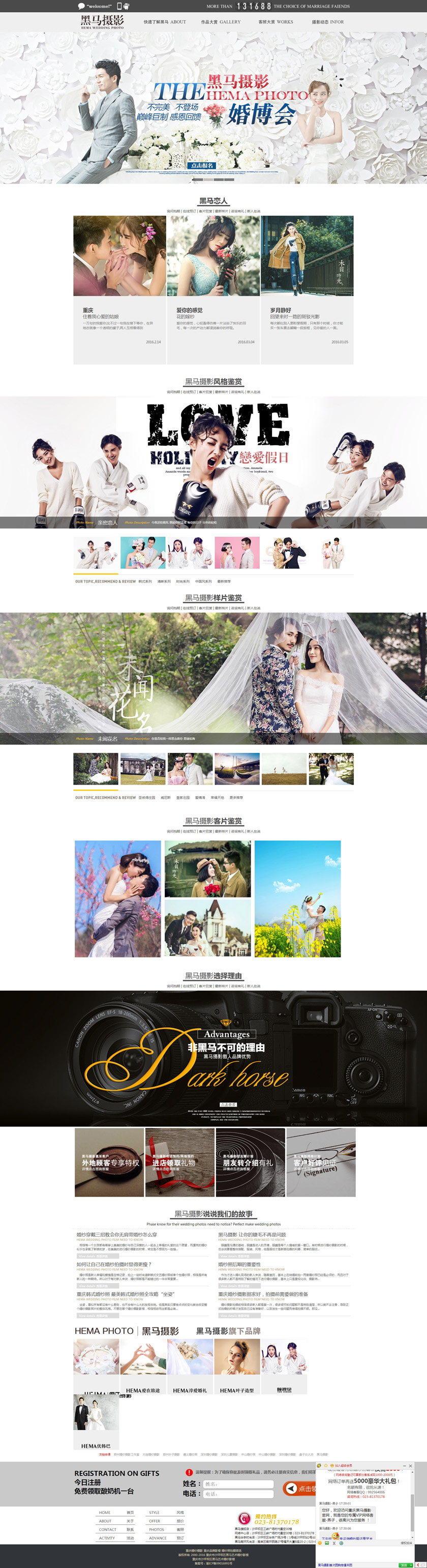 Project Description 黑马摄影,把每一对新人幸福梦想当成毕生的追求和责任,带着一对对新人的支持和厚爱,不断创新摄影风格,完善服务理念。无论从服务,作品,体验,我们虽然不能说100%没有缺陷,但我们有100%追求完美的心 Official website address 重庆http://www.hemaphoto.cn I want to share