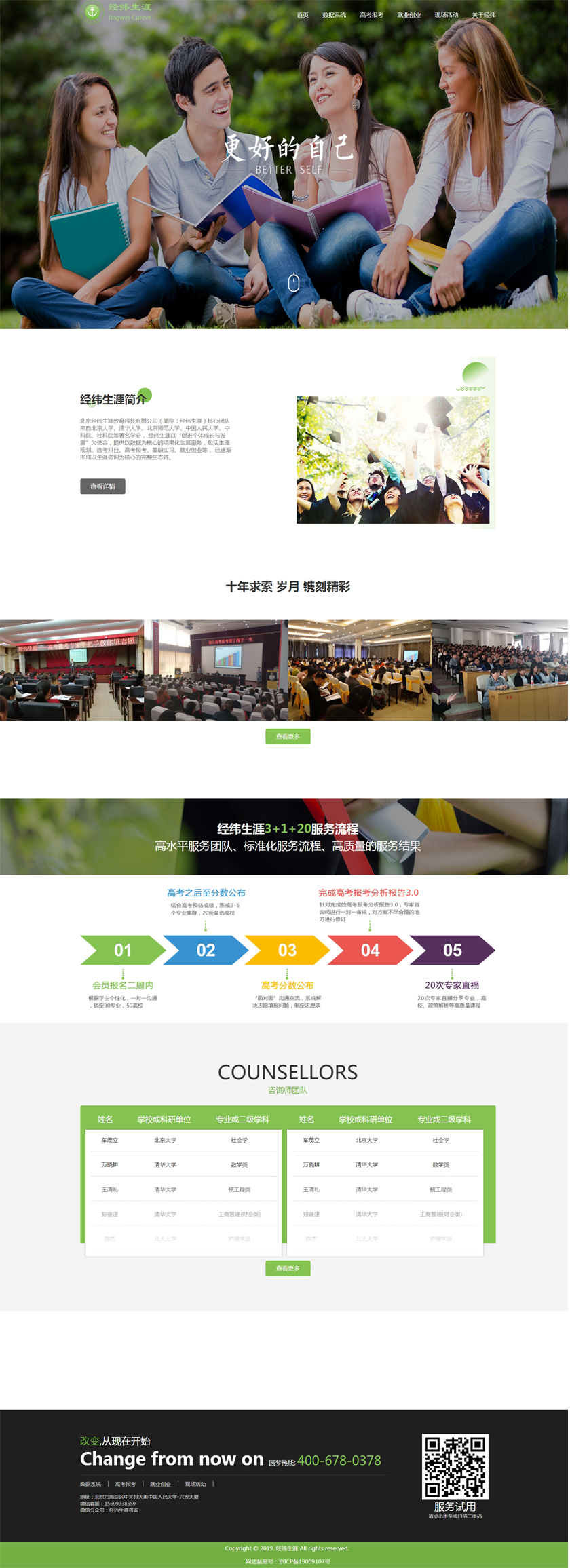 Project Description 北京经纬生涯教育科技有限公司(简称:经纬生涯)核心团队来自北京大学、清华大学、北京师范大学、中国人民大学、中科院、社科院等著名学府, 经纬生涯以“促进个体成长与发展”为使命,提供以数据为核心的结果化生涯服务,包括生涯规划、选考科目、高考报考、兼职实习、就业创业等, 已逐渐形成以生涯咨询为核心的完整生态链。 Official website address 重庆http://www.jingweishengya.com/ I want to share